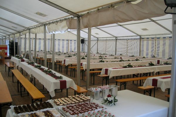 Durch die flexiblen Größen von 8 m bis 11 m Breite, werden Ihrer Phanatsie keine Grenzen gesetzt. Wir haben für jeden Platz oder Aufstellungsort die ideale Lösung für Sie. Die Seitenvorhänge können geschlossen oder auf Wunsch mit Fenster geliefert werden. Die Partyzelte können auch als Beizelte oder als Barzelte beim Großzelt verwendet werden. Auch als Kombination mit Spitzzelt - Pavillon - Großzelt möglich. Wir bieten Ihnen auch einen seitlichen Wirtschaftsanbau (Tiefe 3 m) für Ausschank u.a. an.